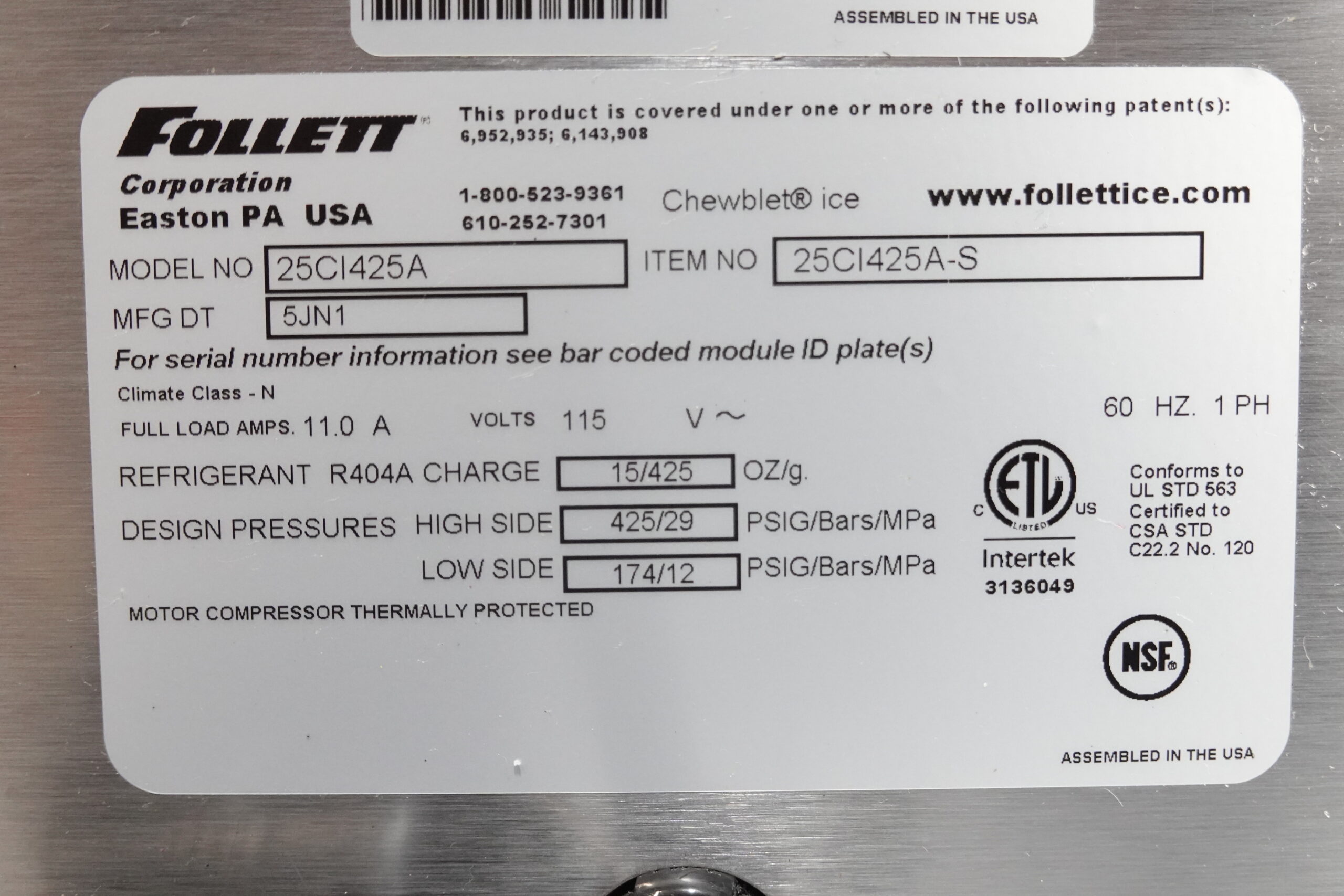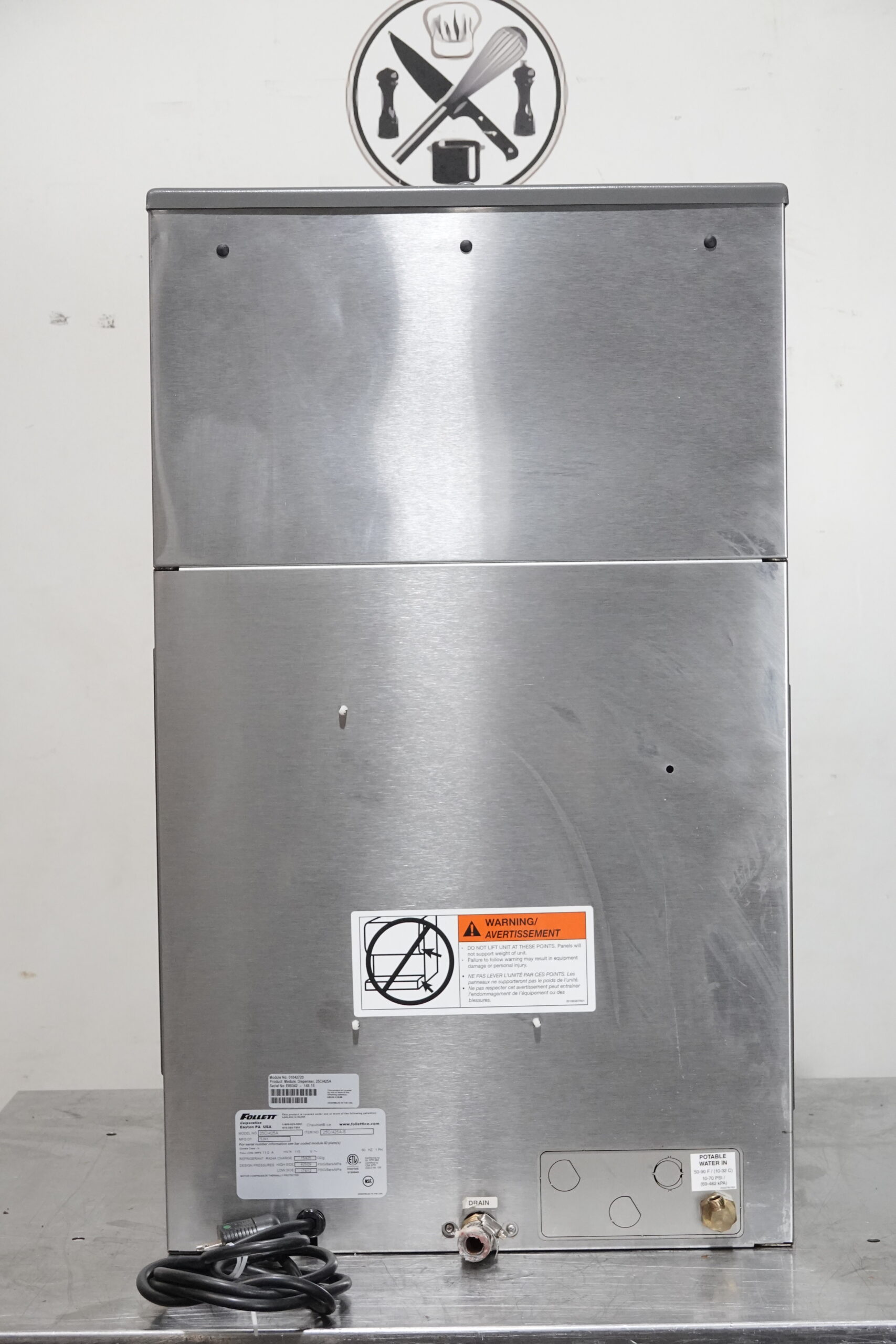 FOLLET 425 LBS AIR COOLED ICE MAKER/WATER DISPENSER (CHEWABLE ICE) MODEL 24CI425A-S